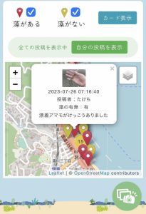 「ここには海草はなかったです」と、みんなが藻場情報を投稿。