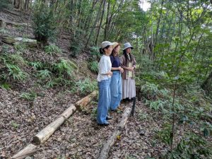 実際に森を散策して、精油を含む樹木に触れるなど五感で感じていただく。