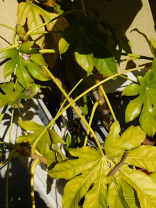 19年前に亡くなったお父様が裏庭に植えた「やつで」を鉢植えに。