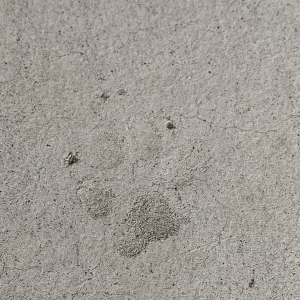 駐車場を直した時、まだ固まっていないコンクリートを歩いてもらって作った足跡。